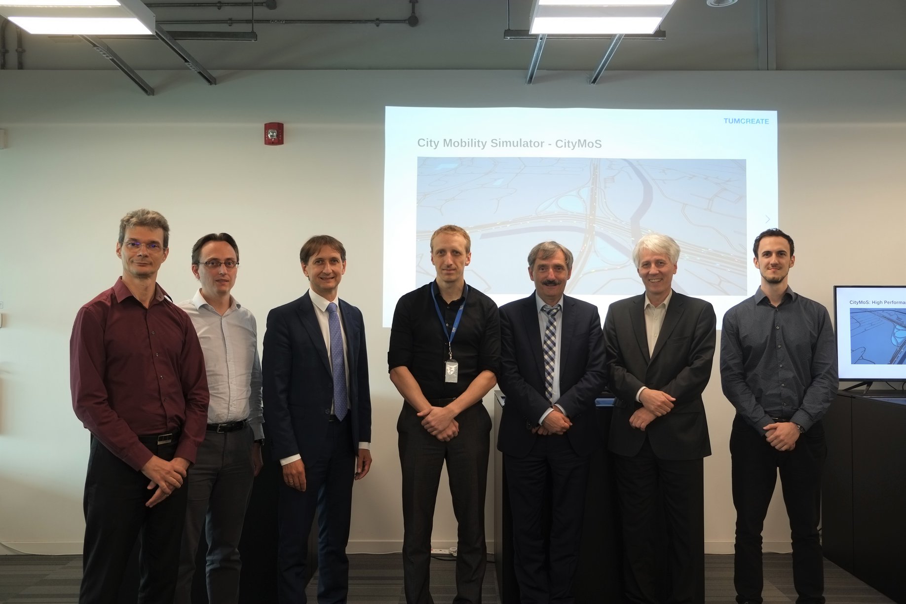 TUMCREATE hosted the delegates, Mr Zielke and Mr Damm, from The German Federal Ministry of Transport and Digital Infrastructure (BMVI) at our office this week. We discussed our research work and innovations and had a productive exchange with our guests. I gave a presentation on CityMoS and showed how novel simulation tools can help mitigate traffic problems.