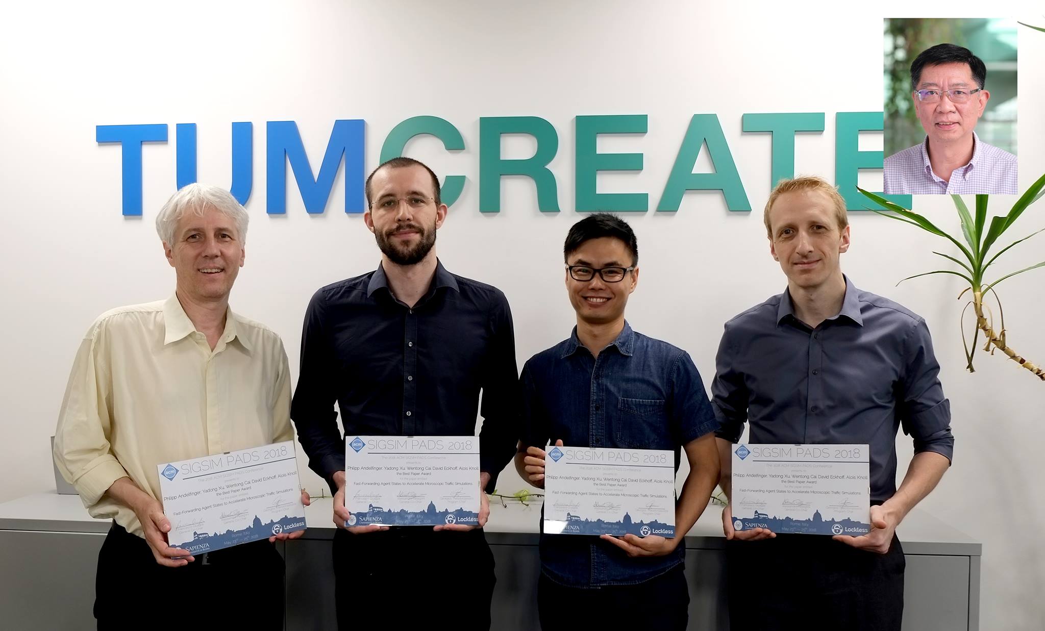 We were awarded the best paper award at ACM SIGSIM PADS 2018! The ACM SIGSIM Conference on Principles of Advanced Discrete Simulation (PADS) is a prestigious and unique forum for Simulation and Modeling. In our paper, we propose an innovative method to improve the performance of traffic simulation. The basic concept is to avoid unnecessary computation by dynamically reducing the update frequency. The proposed method enables more timely results in traffic simulation studies without compromising accuracy.