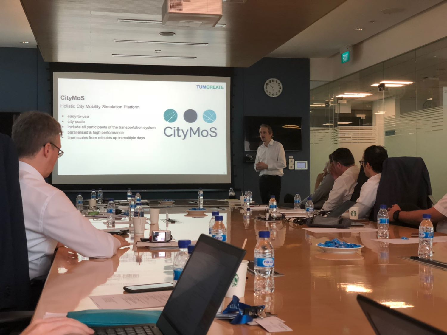 This week was rather busy as I had to give three (different) presentations within two days. First, I was invited by the Singapore-ETH Centre to give a talk on how to write proposals and acquire funding. It was a lot of fun to talk to 40+ other early career researchers and discuss the funding landscape of Singapore. Secondly, a delegation of some 50 Roland Berger (and other) consultants visited TUMCREATE and I gave a presentation in the CREATE theatrette on Smart Cities and how intelligent transport systems can be simulated. Lastly, we were honoured by the visit of a team around Detlev von Platen, a member of the executive board of Porsche. In a small circle, we had the chance to discuss our research and the role of automotive OEMs in future cities.